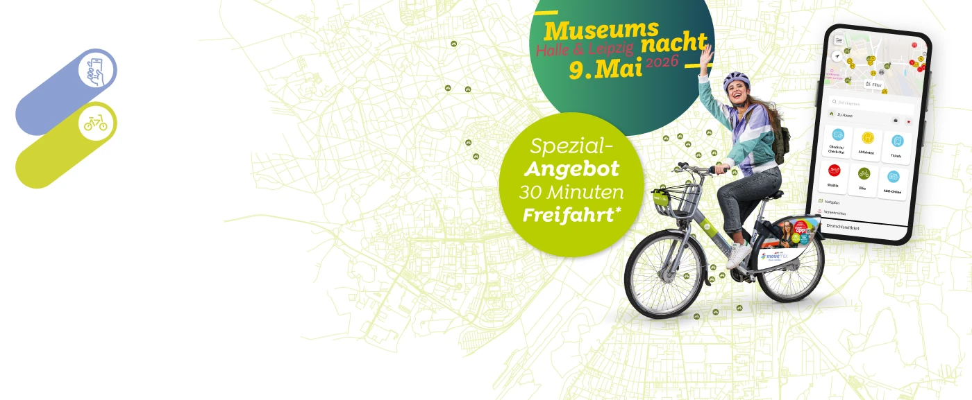 In Halle können movemix_bike ausgeliehen werden. So sind an über 100 Standorten über das gesamte Stadtgebiet ca. 450 Fahrräder, 50 E-Bikes sowie 6 Lastenräder verteilt.