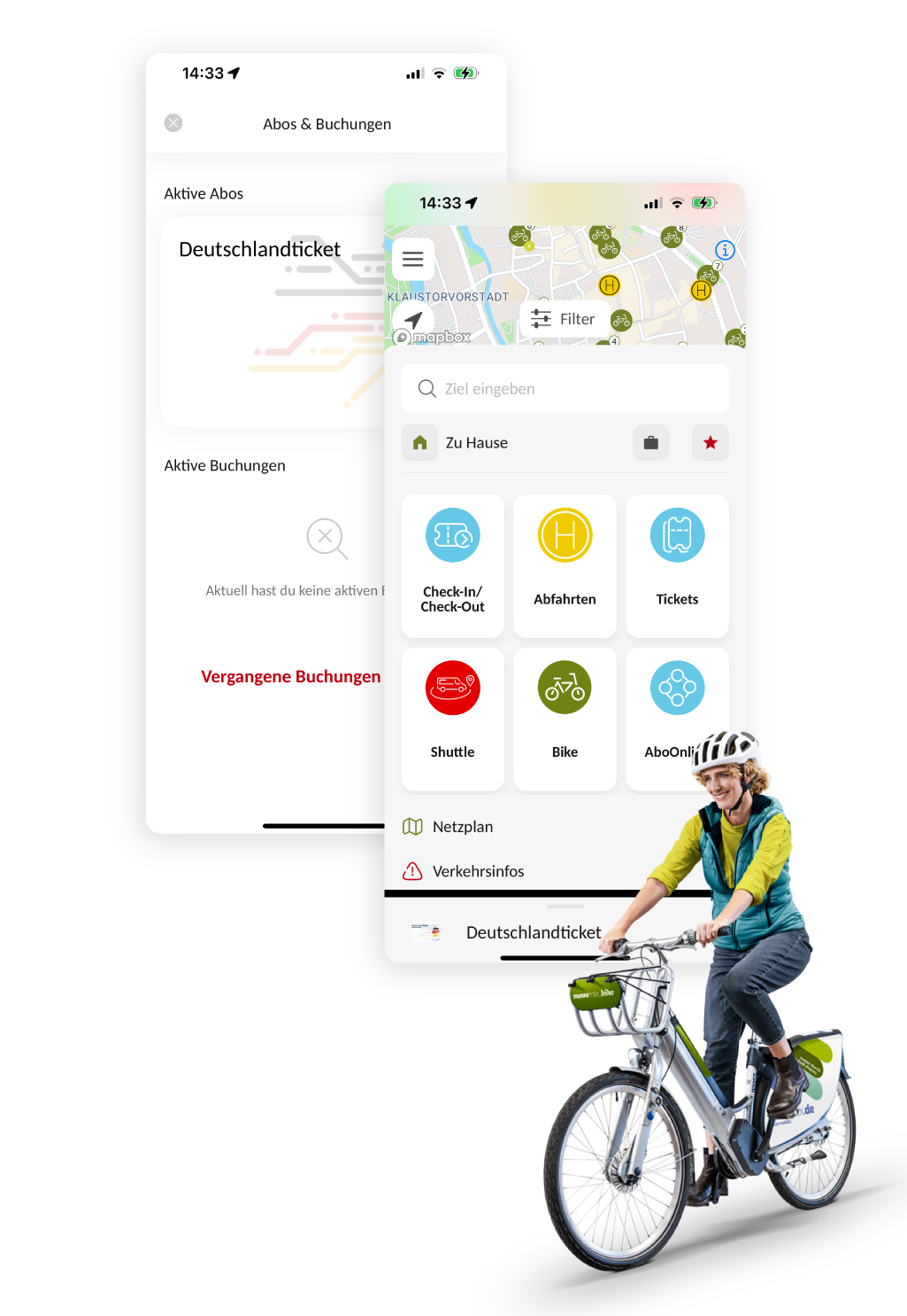 Beide Abos kombinieren ein ÖPNV-ABO mit dem movemix_bike, welches hierbei Freiminuten für Standardfahrräder und eine Vergünstigung für die Nutzung von E-Bikes beinhaltet.
